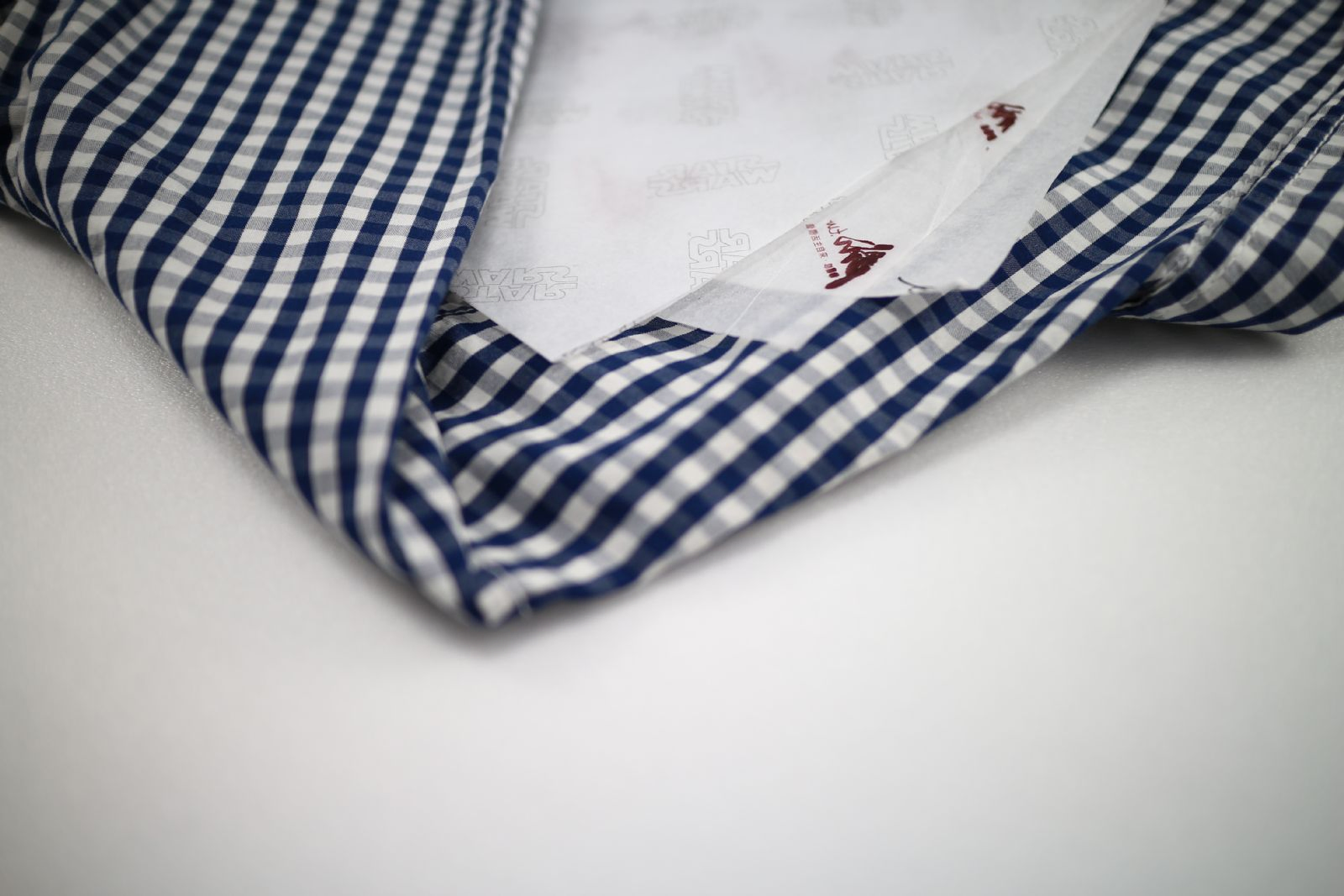 在成衣服飾界,尤其是歐美的品牌,像是JCPenney, Zara,H&M等都在包裝上下了不少,這張薄薄的薄紙,有的時候是環覆的包裝再整件折好的衣服外面,有的時候是內襯的夾在摺好的衣服裡面,此類襯紙名稱眾多,如防潮紙,成衣包裝紙,服飾襯紙等。